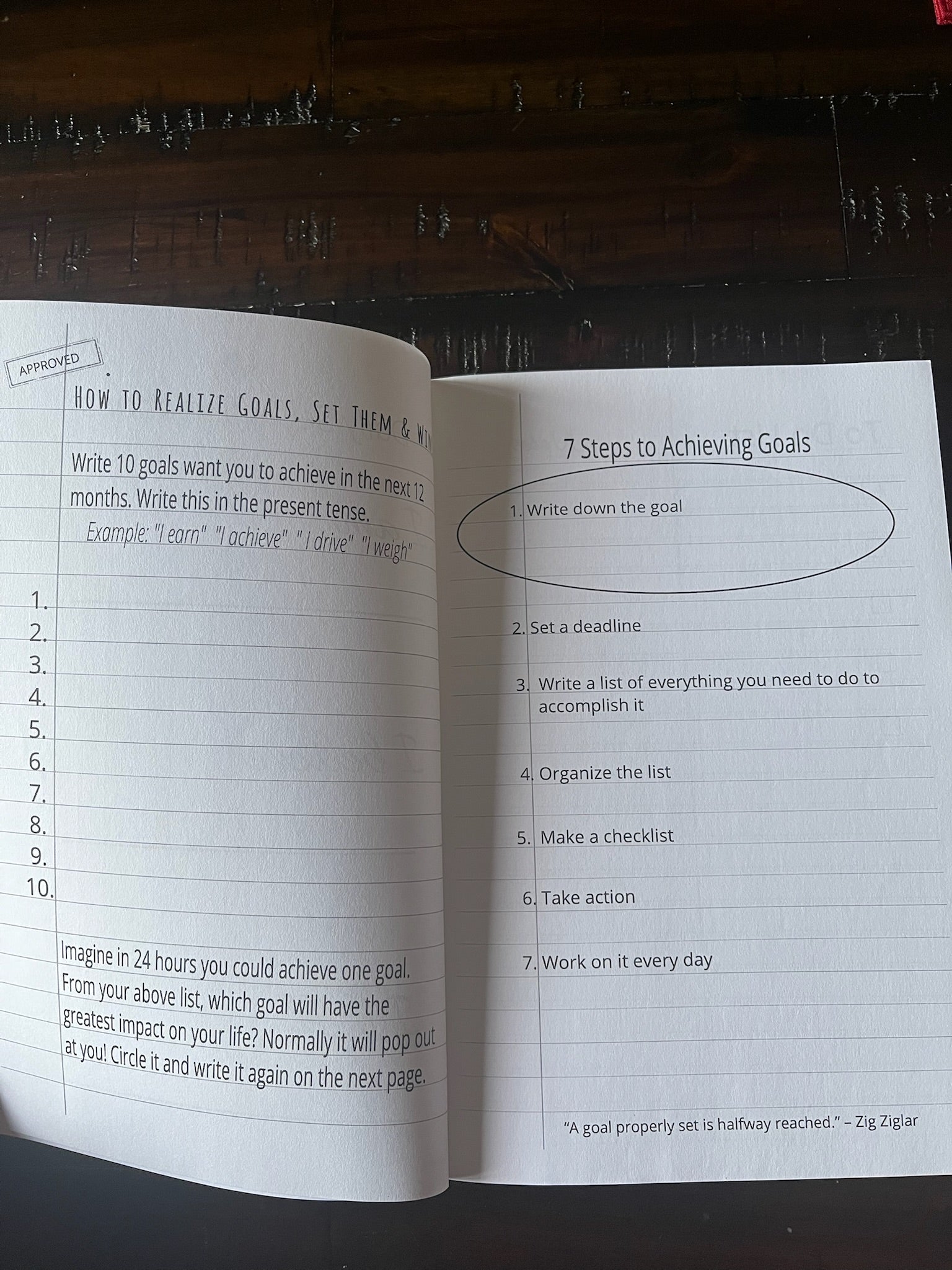 - Step-by-step instructions with fillable space, utilizing a success approach to setting goals and achieving them