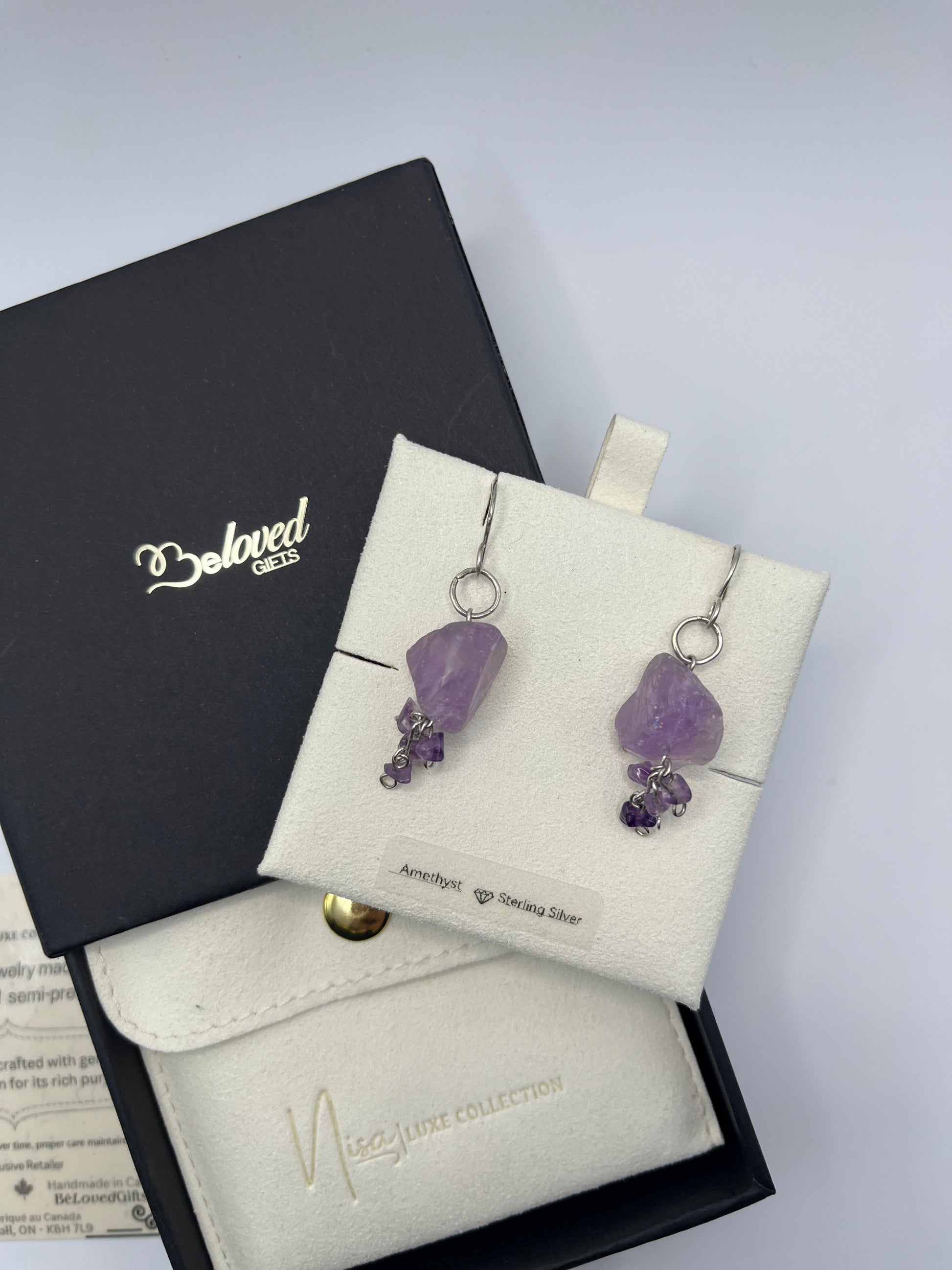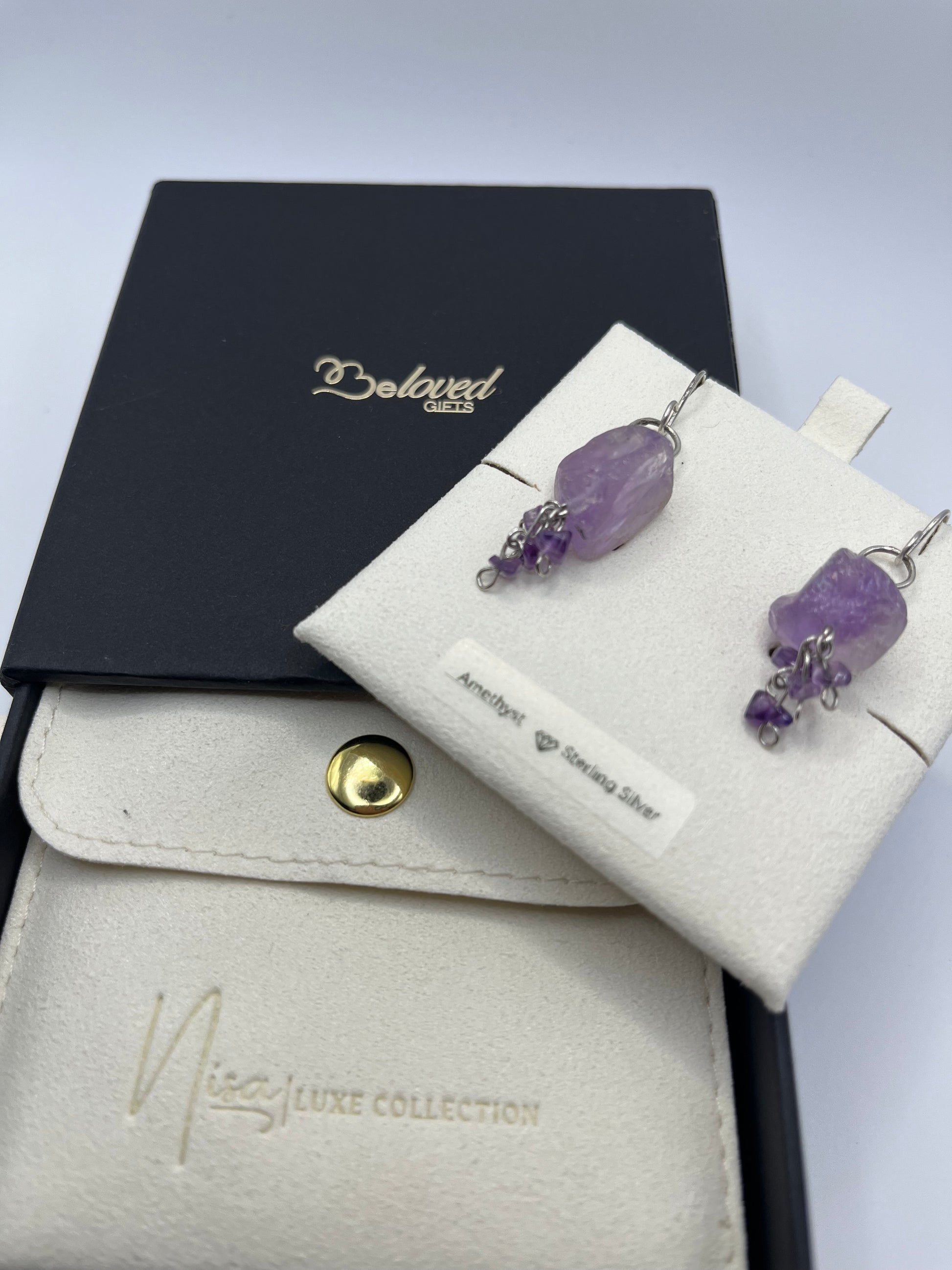 Amethyst - Purple Shimmer Luxury Handcrafted Sterling Silver Semi-Precious Dangling Earrings
