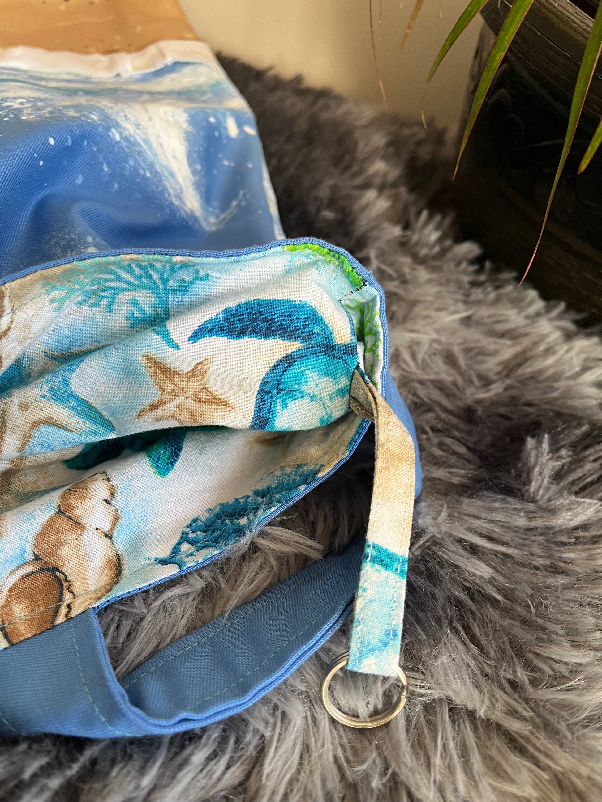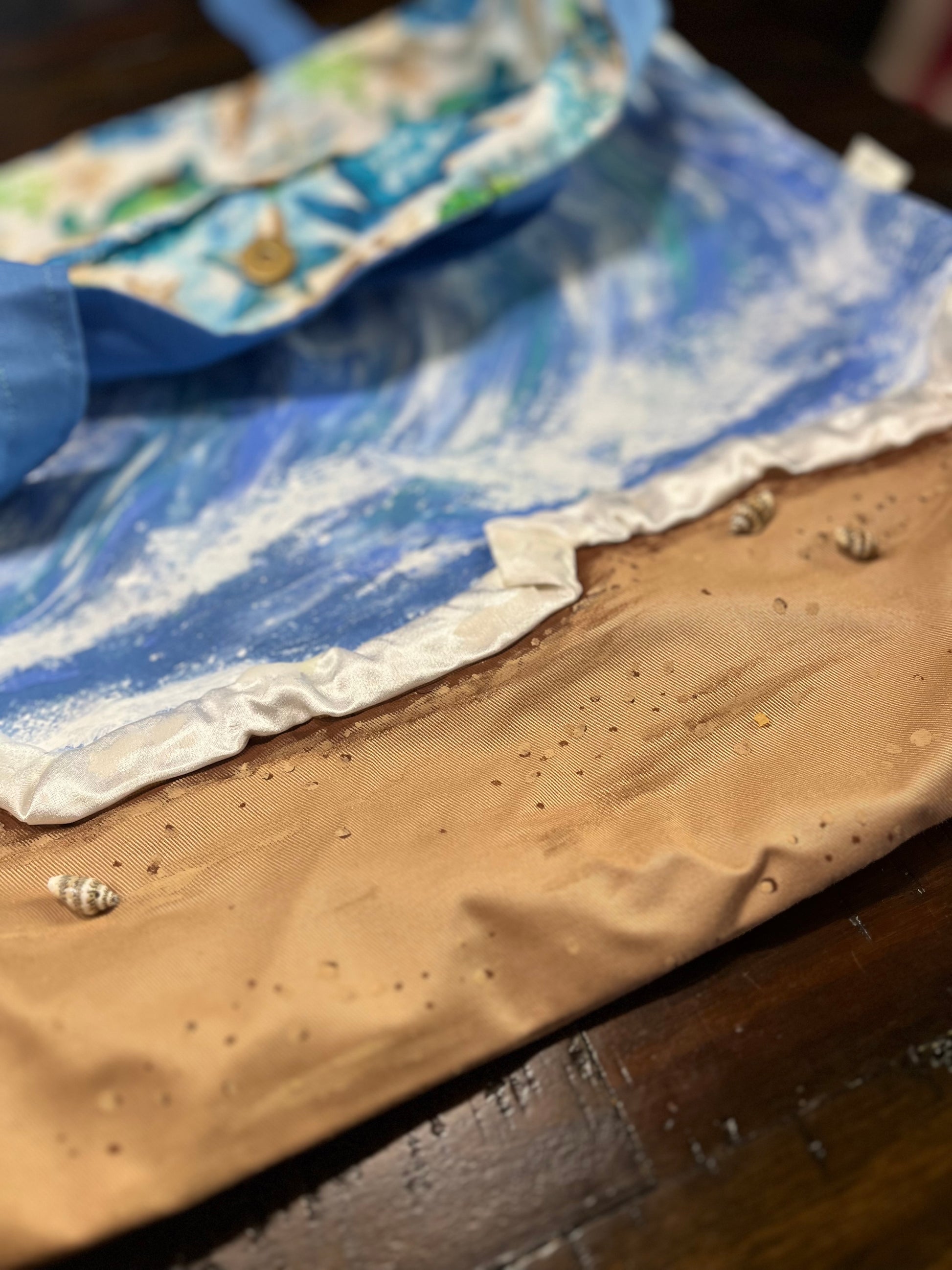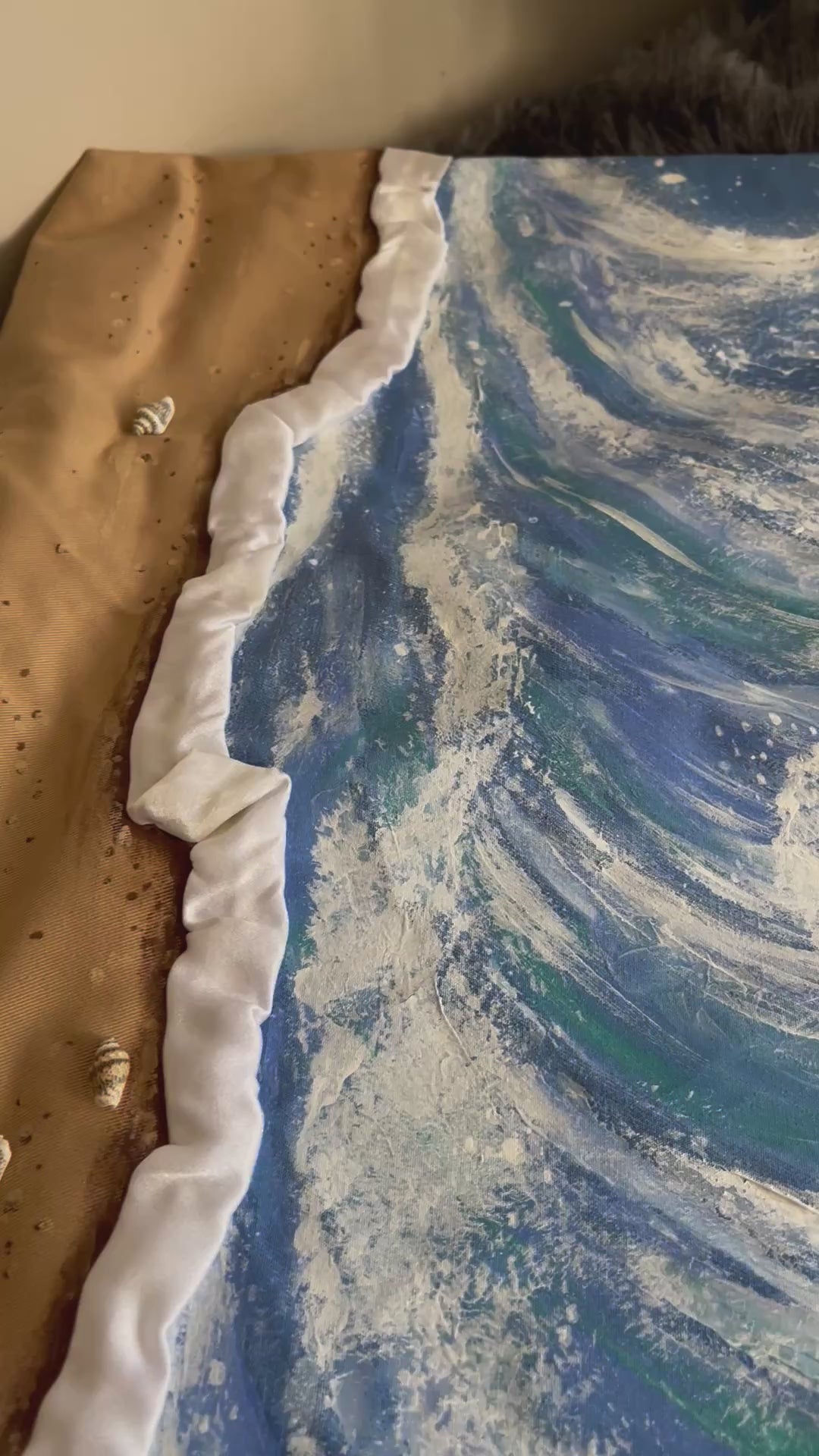 - Large Tote - Hand-Painted Waves, Stitched on Shells and Satin Ocean Foam Line