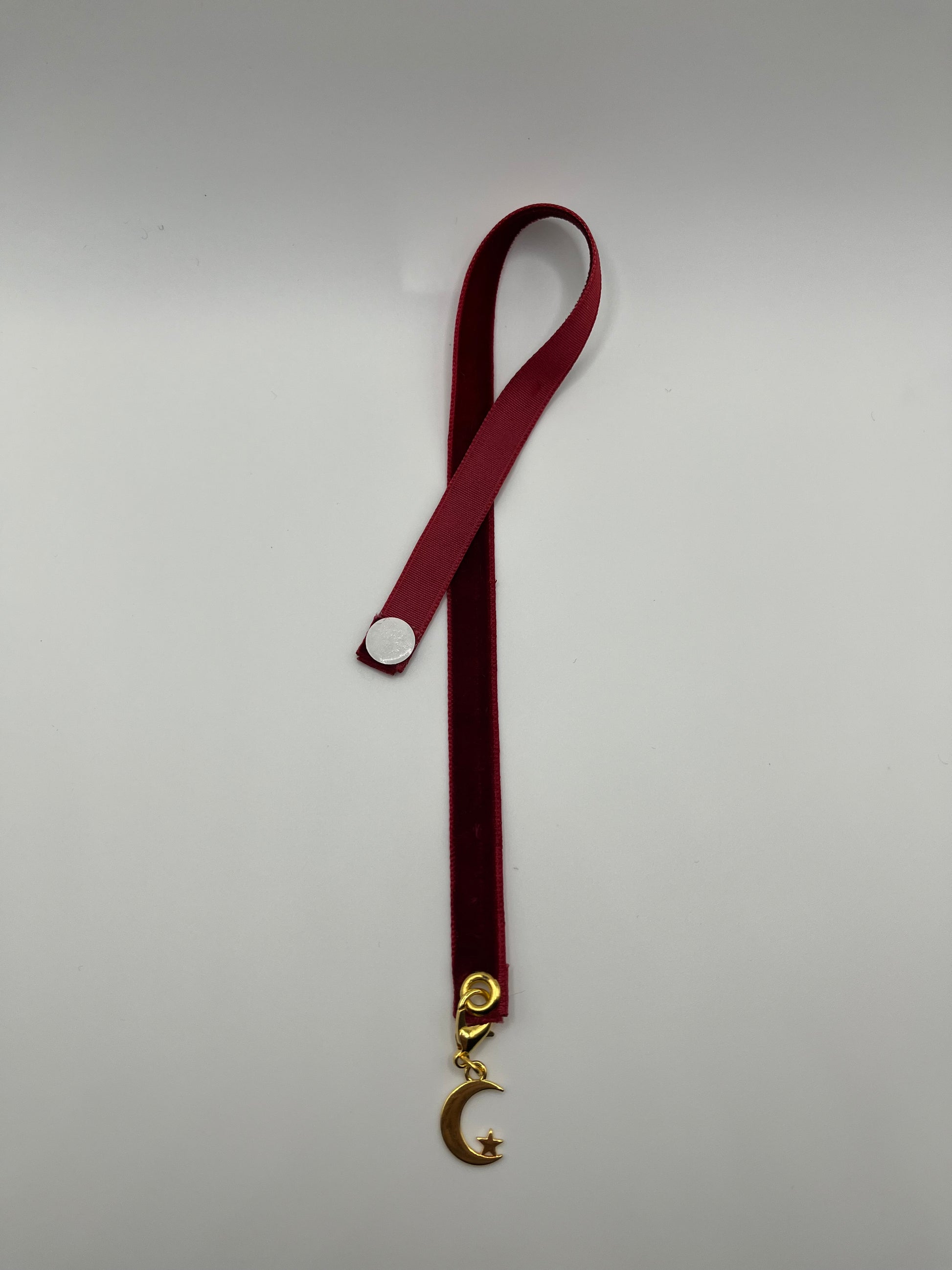 - One 10mm/1cm wide burgundy red velvet ribbon Book-It™ bookmark with gold eyelet