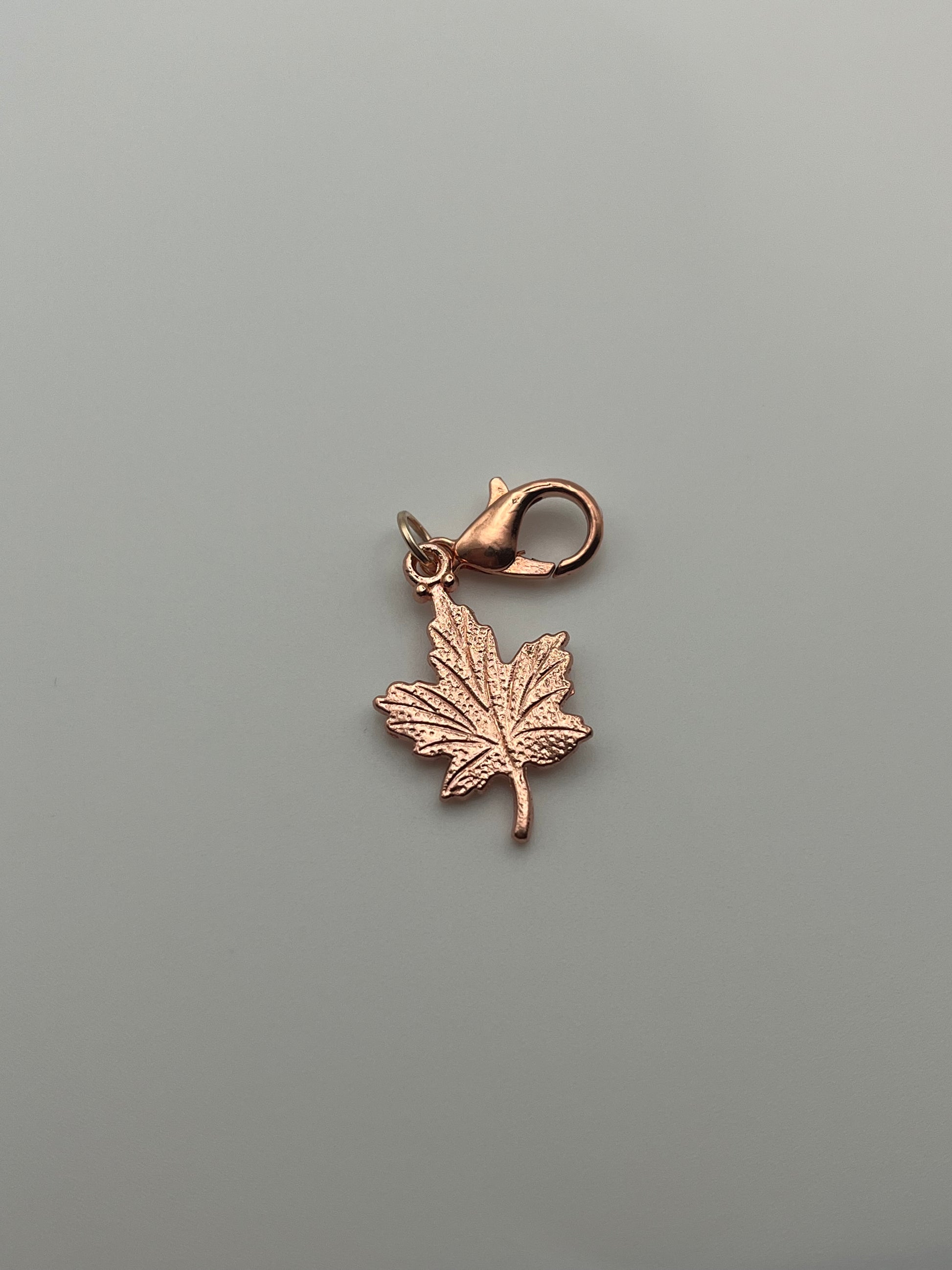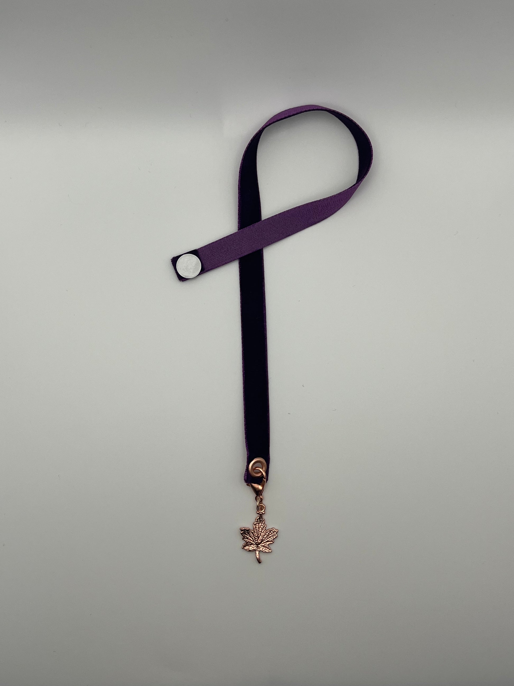Canadian Maple Leaf – Purple Velvet Reusable Adhesive Bookmark with a Charm (Rose Gold Maple Leaf) in a Mini Gift Box