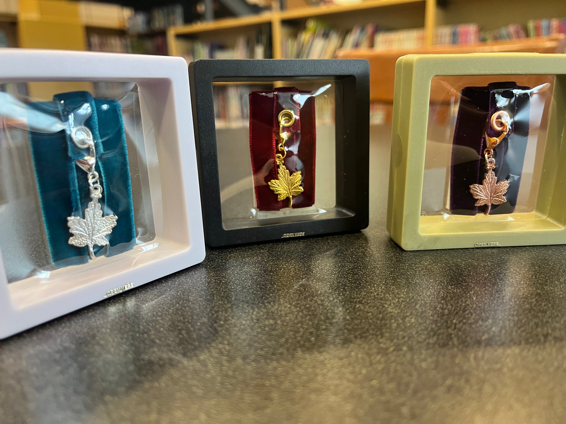 Our Canadian Mini Gift features a velvet bookmark with a silver maple leaf charm. These cute minis are a usual, easy-to-pack, yet luxurious way to share some Canadian love with family and friends.
