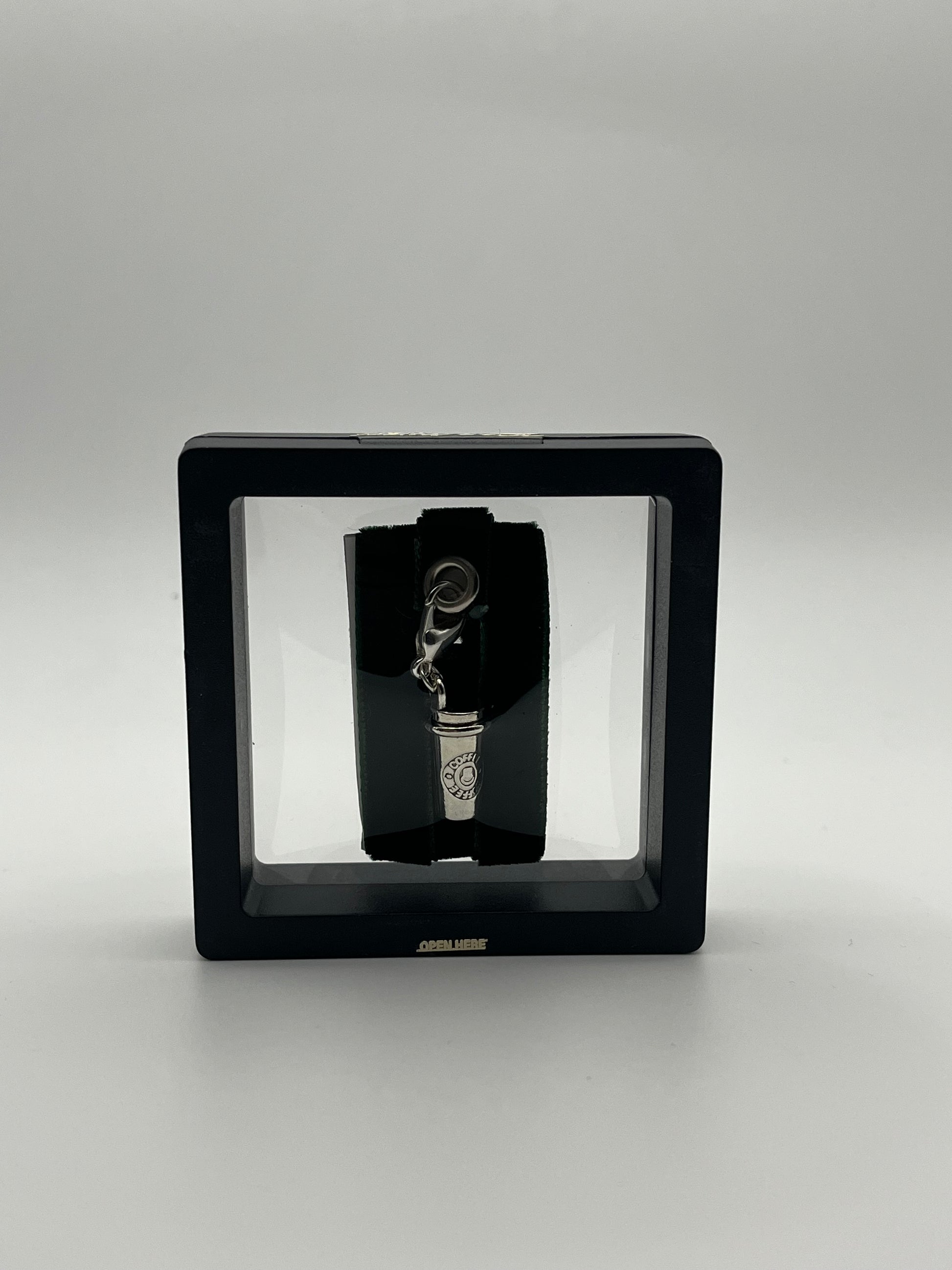 - One 10 mm/1 cm wide, green velvet Book-It™ bookmark with a silver-coloured eyelet