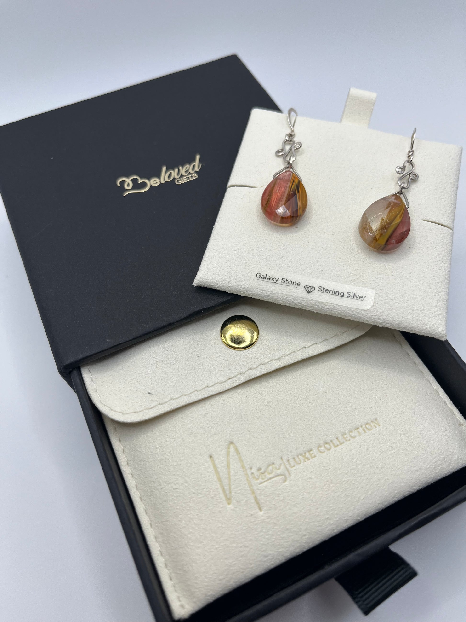 Galaxy Stone – Orange Brown Light Show Luxury Handcrafted Sterling Silver Semi-Precious Tear Drop Earrings