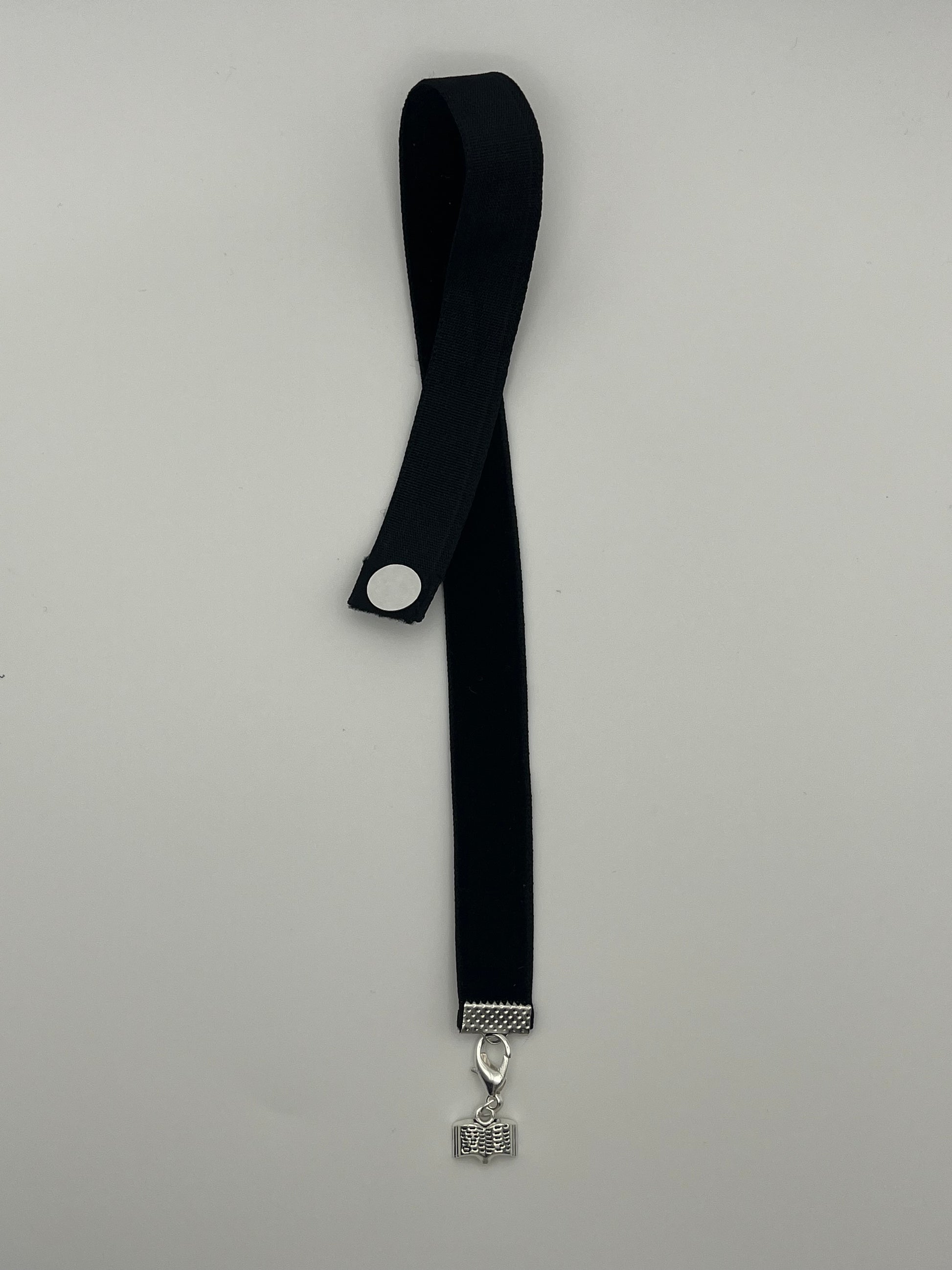 - One 15 mm/1.5 cm wide, black velvet Book-It™ bookmark with a silver-coloured crimp
