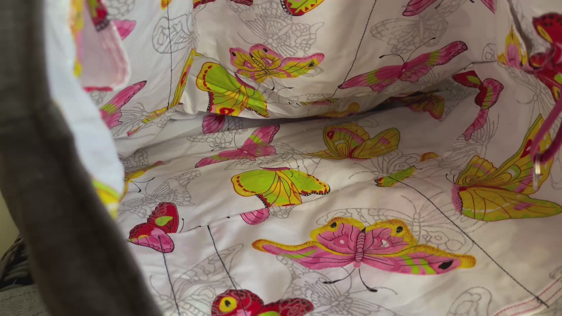 - Inside fabric: matching butterfly print featured on outside pocket