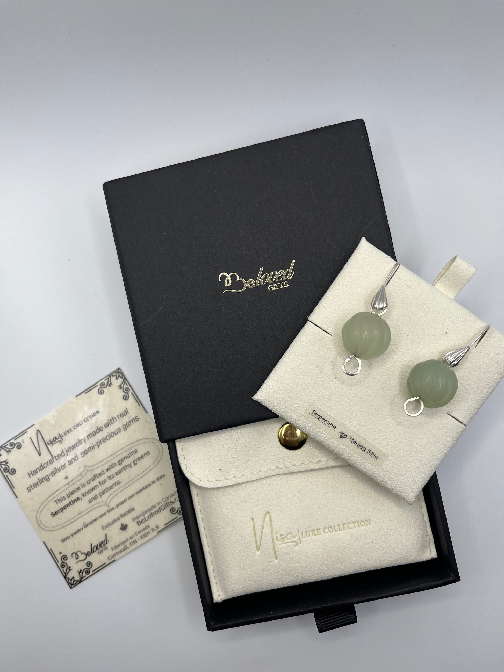 Serpentine - Green Spin Luxury Handcrafted Sterling Silver Semi-Precious Ball Spiral Earrings