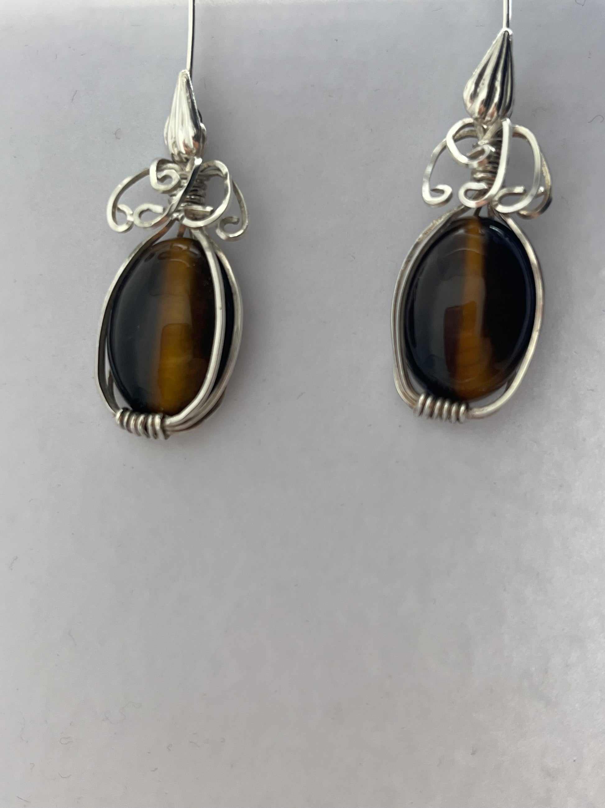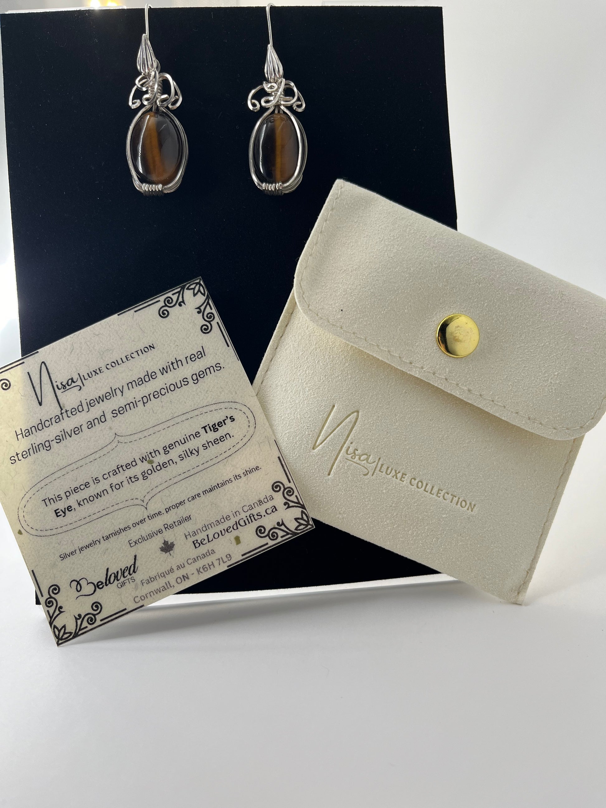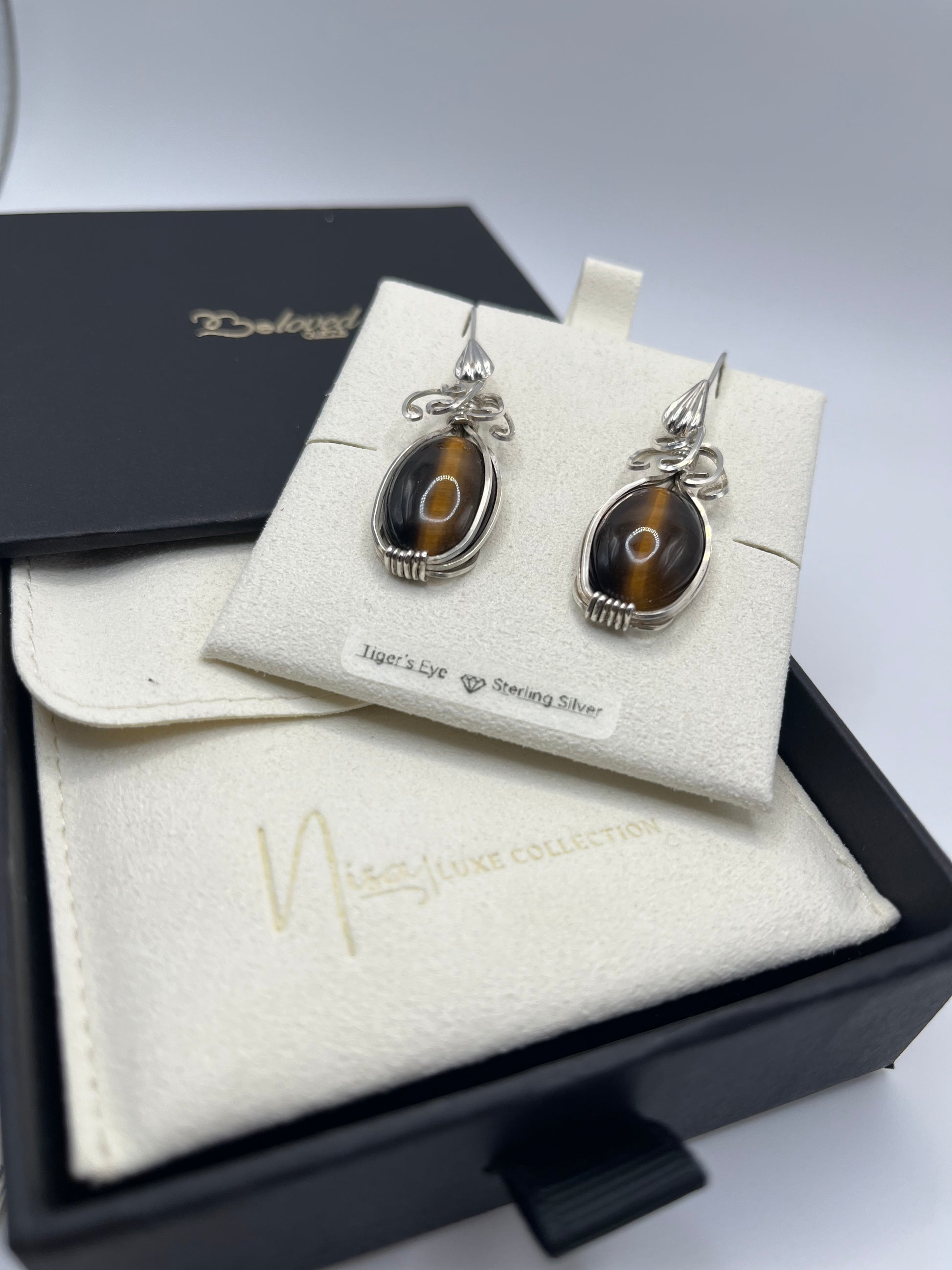 Tiger’s Eyes - Brown Glint Luxury Handcrafted Sterling Silver Semi-Precious Tear Drop Earrings